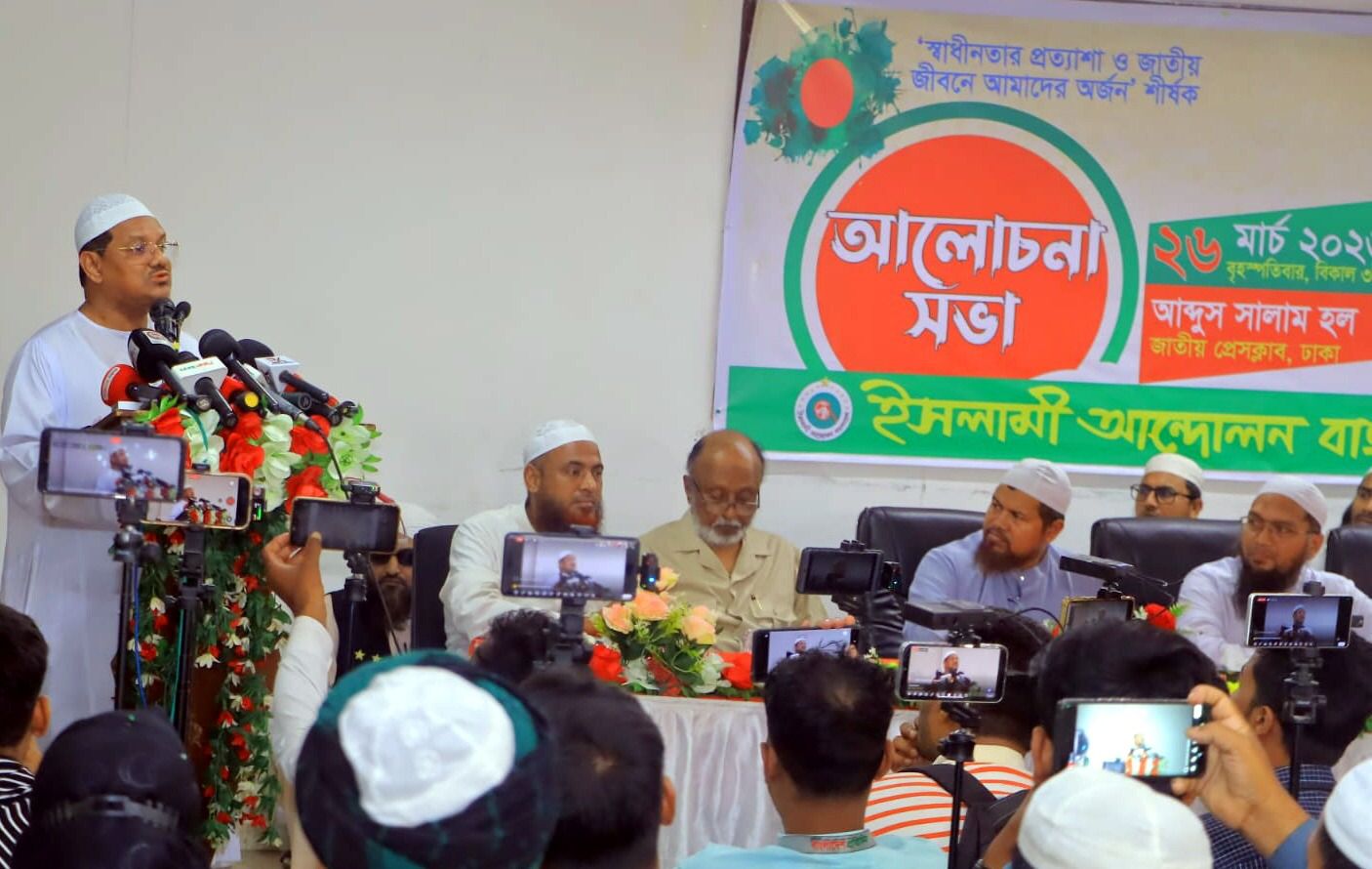 আজ ২৬ মার্চ বৃহস্পতিবার বিকেলে রাজধানীর জাতীয় প্রেসক্লাবের আব্দুস সালাম হলে ইসলামী আন্দোলন বাংলাদেশ ঢাকা মহানগরীর উদ্যোগে ‘স্বাধীনতার প্রত্যাশা ও জাতীয় জীবনে আমাদের অর্জন’ শীর্ষক আলোচনা সভায় প্রধান অতিথির বক্তব্যে তিনি এসব কথা বলেন।